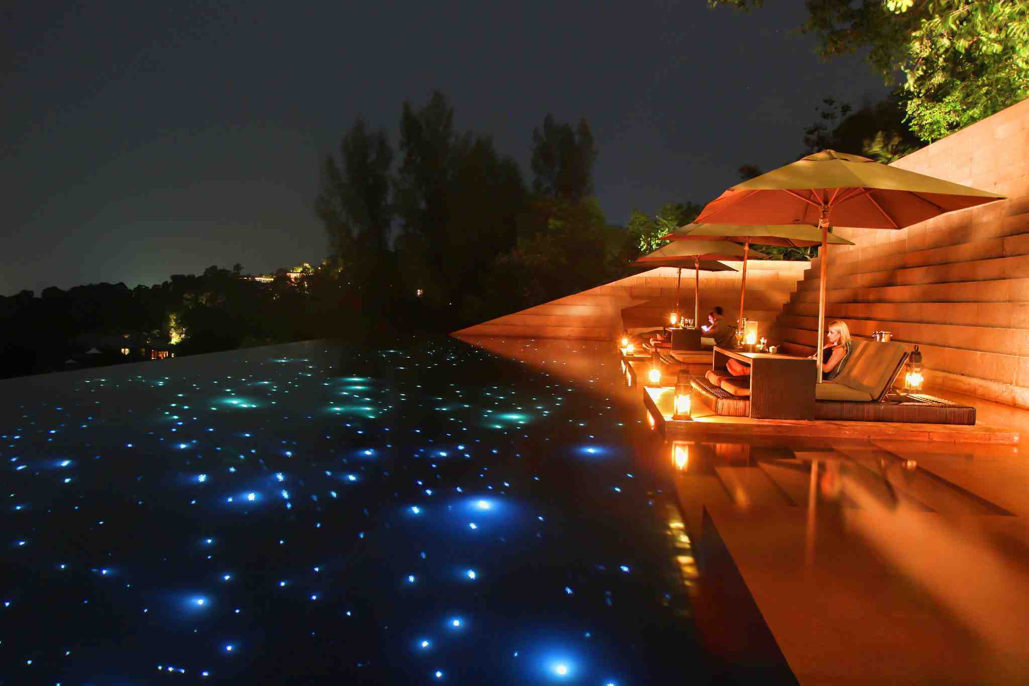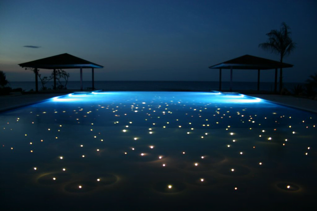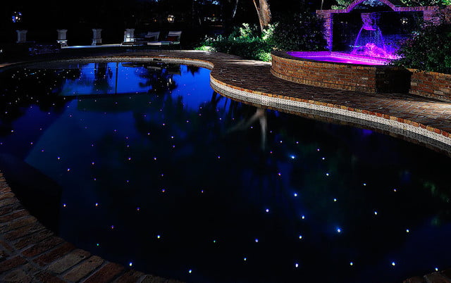 Se conecta a la toma de corriente eléctrica un generador de iluminación, que será el encargado de transmitir el color a través de los hilos de la fibra óptica, se pueden sumergir o ponerlas como delimitadores de la piscina.